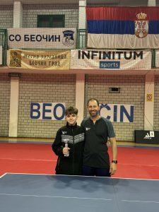 Νέα μεγάλη επιτυχία για τον Όμιλο και την ελληνική επιτραπέζια αντισφαίριση σημείωσε ο 12χρονος Φάνης Μαρκουλάκης, ένα χρόνο μικρότερος από την κατηγορία του, ο οποίος πρόσθεσε ακόμη μία σπουδαία διάκριση στο ενεργητικό του. Ο νεαρός Χανιώτης αθλητής ανέβηκε στο βάθρο του Europe Youth Tournament στη Σερβία κατακτώντας το χάλκινο μετάλλιο στην κατηγορία Κ13, έφτασε στην 5η θέση στο ομαδικό με συμπαίκτη τον Αλεξίδη Νικόλαο από Θεσσαλονίκη και μπήκε στην 16αδα στην κατηγορία Under15, επιβεβαιώνοντας την ανοδική του πορεία σε πανευρωπαϊκό επίπεδο.